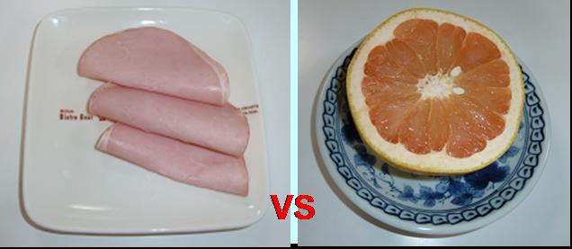 そう、彼はブレックファースト・ハムを注文したのですが、なんと、メニューにはグレープフルーツ ハーフが載っていたのでした。